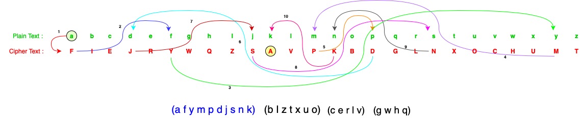 Follow the cycle of plaintext letters to cipher text letters as shown: