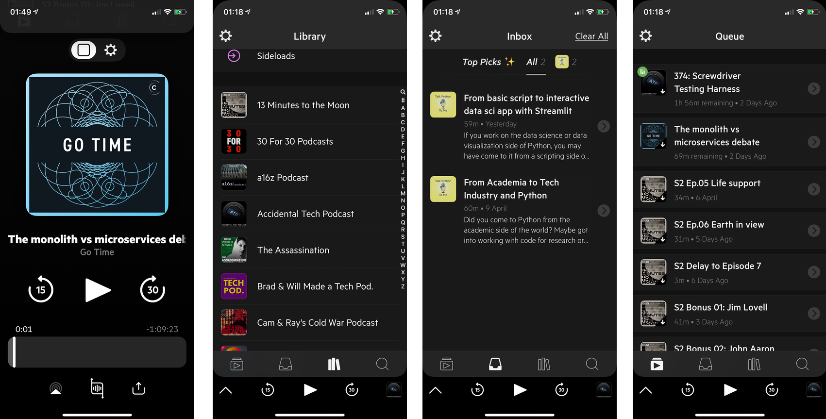 In addition Castro is much better for discovering new podcasts than other players. I often got podcast recommendations that I would subscribe to in my previous player but then forget about. With Castro you can easily dip in and out of episodes of new podcasts without losing them in some weird playlist logic because episodes pop into your inbox and you can quickly decide what to do with them. It provides you with a great method for deciding if this new podcast is something you will listen to regularly or occasionally without losing episodes or being required to make some sort of ’to listen’ playlist.