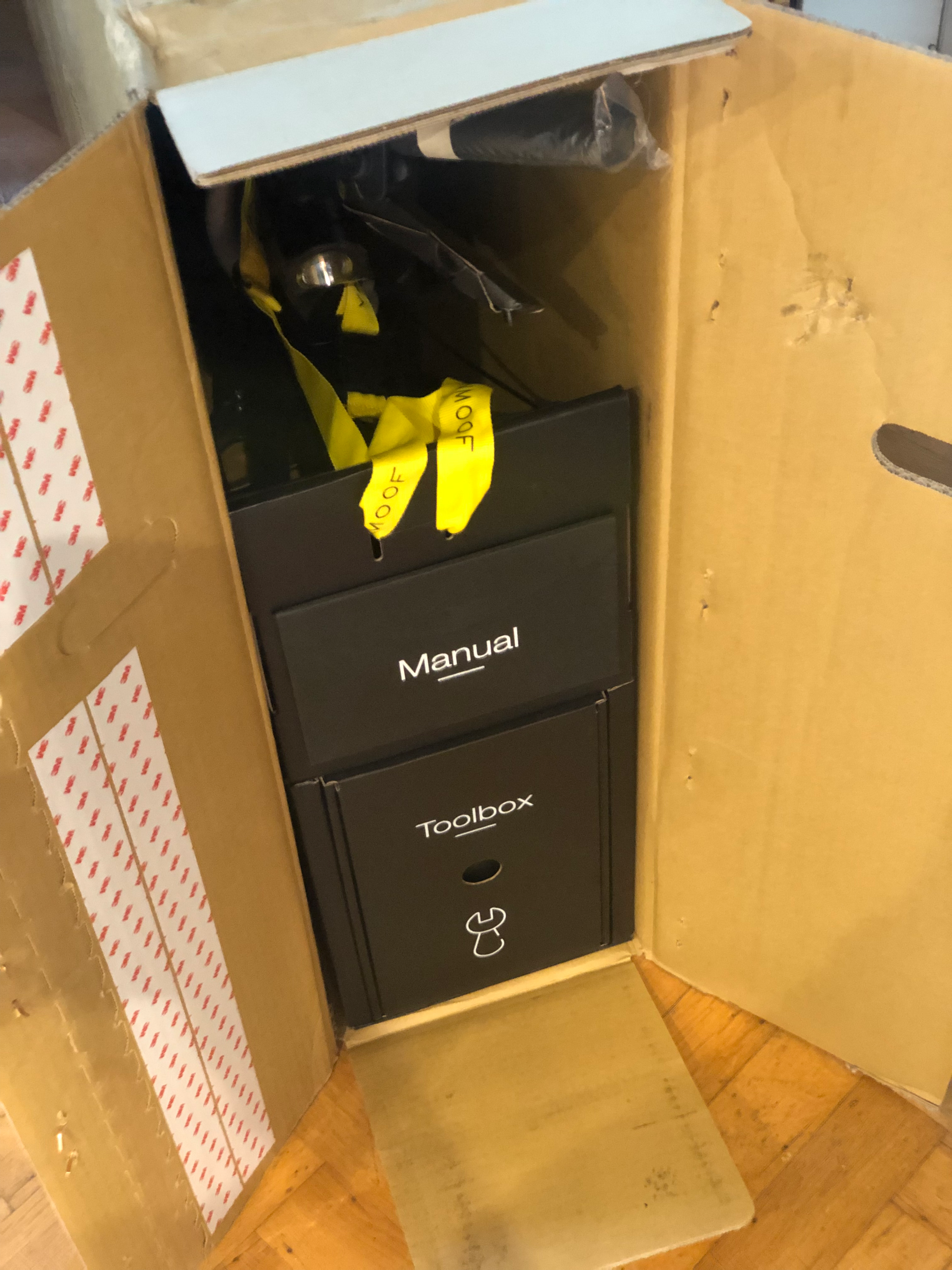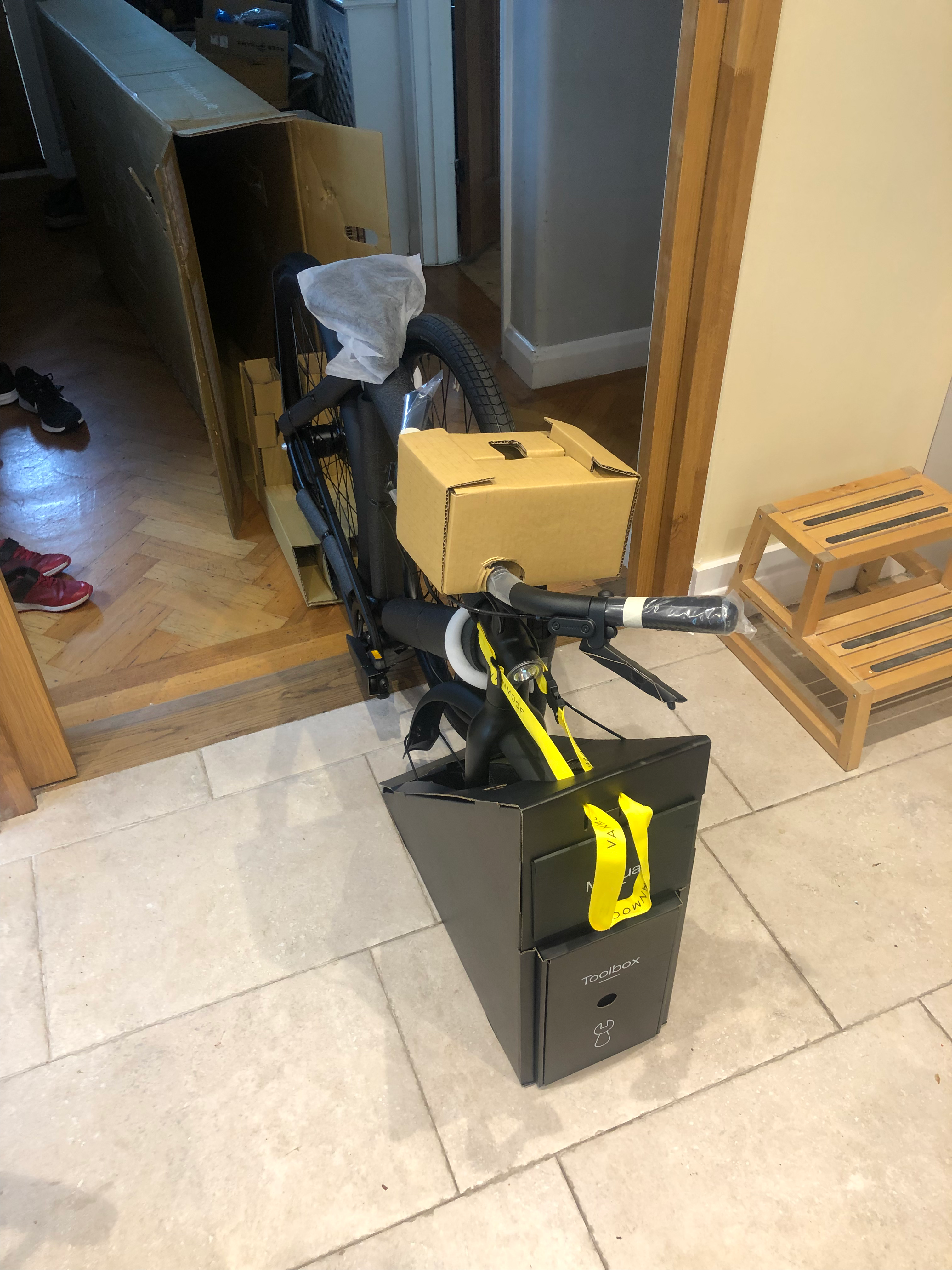 Like many of these new, hop, to-cool-for-school techy companies, VanMoof went for a slick unboxing experience with nice little boxes for the tools, a clever cardboard wheel stand to hold your bike as you assemble it. The unboxing experience didn’t disappoint and went as expected.